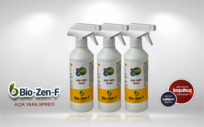 BİO-ZEN-F Açık Yara ve Şap Dezenfektanının Teknik ÖzellikleriŞap hastalığında koruyucu yan ürün olarak kullanılmaktadır. İlaç özelliği yoktur. Şap hastalığının bulunduğu her türlü sahada püskürtme yöntemiyle kullanılmaktadır. Şap hastalığına ve aşısı yapılan hayvanların sırtlarına, ayaklarına, bacaklarına, ağız ve dil bölgesine günde 3 defa püskürtme yöntemiyle kullanılan BİO-ZEN-F iki günlük bir uygulama yapıldıktan sonra yardımcı ürün ve tedavisini tamamlamış olur. Ayrıca küçük baş hayvanlarda yün kırkımı sonrasında hayvanın gözleri hariç bütün vücuduna püskürtme yapılırsa kene yapışmasını engeller. Boş ahırlarda kullanıldığı zaman zararlı mikrop ve kokuları engeller. Üremesini önler. Süt sağım ünitelerinde ve ekipmanlarında daldırma yöntemiyle tam bir sterilizasyon sağlar.